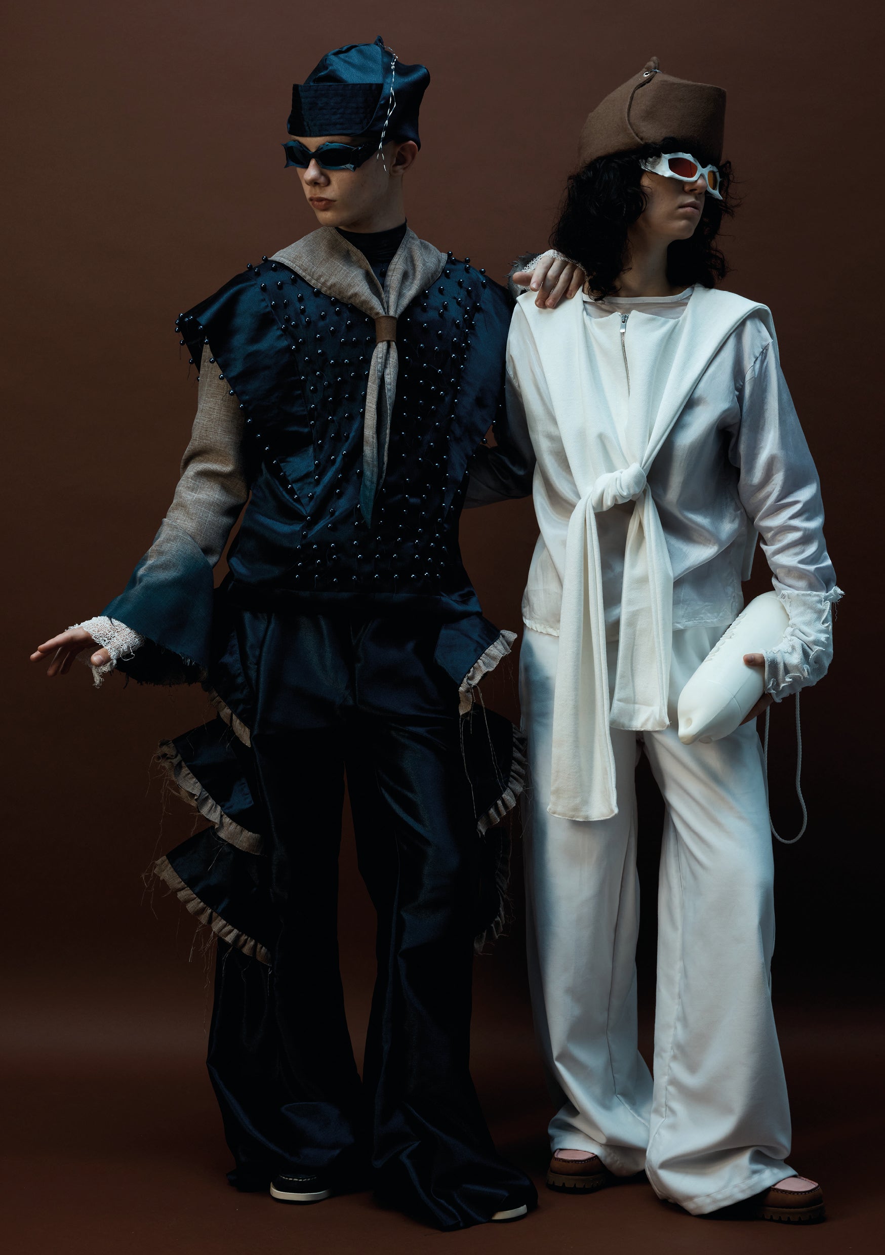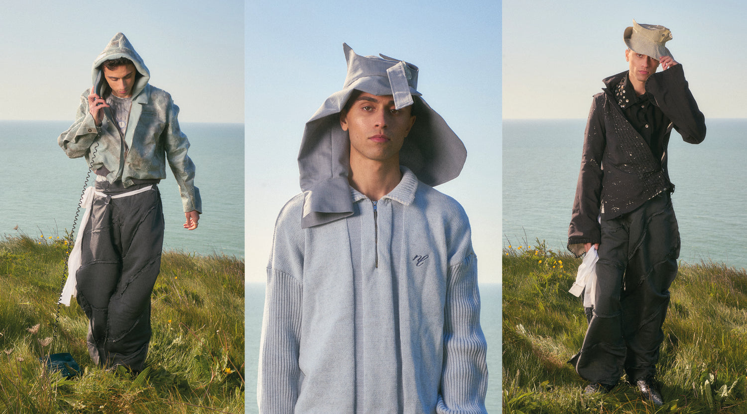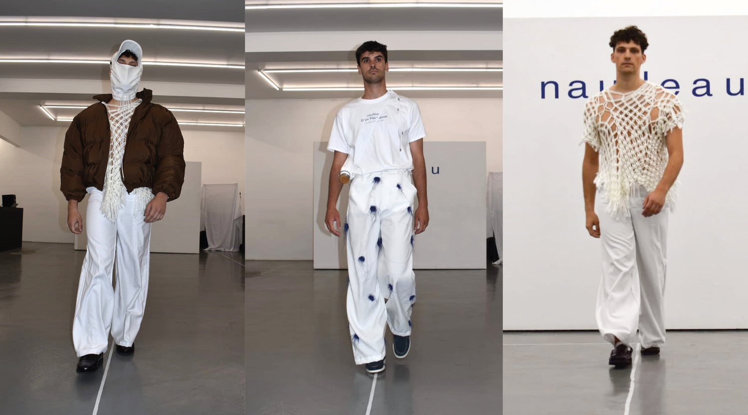"The metamorphosis of the fisherman" Fluence evokes the constant flow of the tides, the fluidity of water. The collection tells the story of a shipwreck revisited. Through each ensemble, we explore the evolution of a contemporary sailor, initially elegant and sophisticated, who gradually transforms into an aquatic creature, half-man/half-sailor at the height of the fashion show, while occasionally reprising the codes of fishermen. We find aquatic forms in the final looks, inspired by the sea bed, in the style of Guillermo del Toro's film ‘The Shape of Water’.