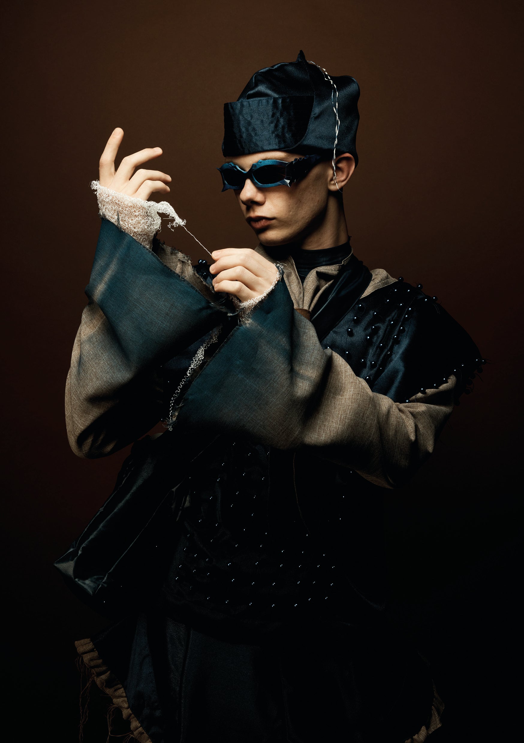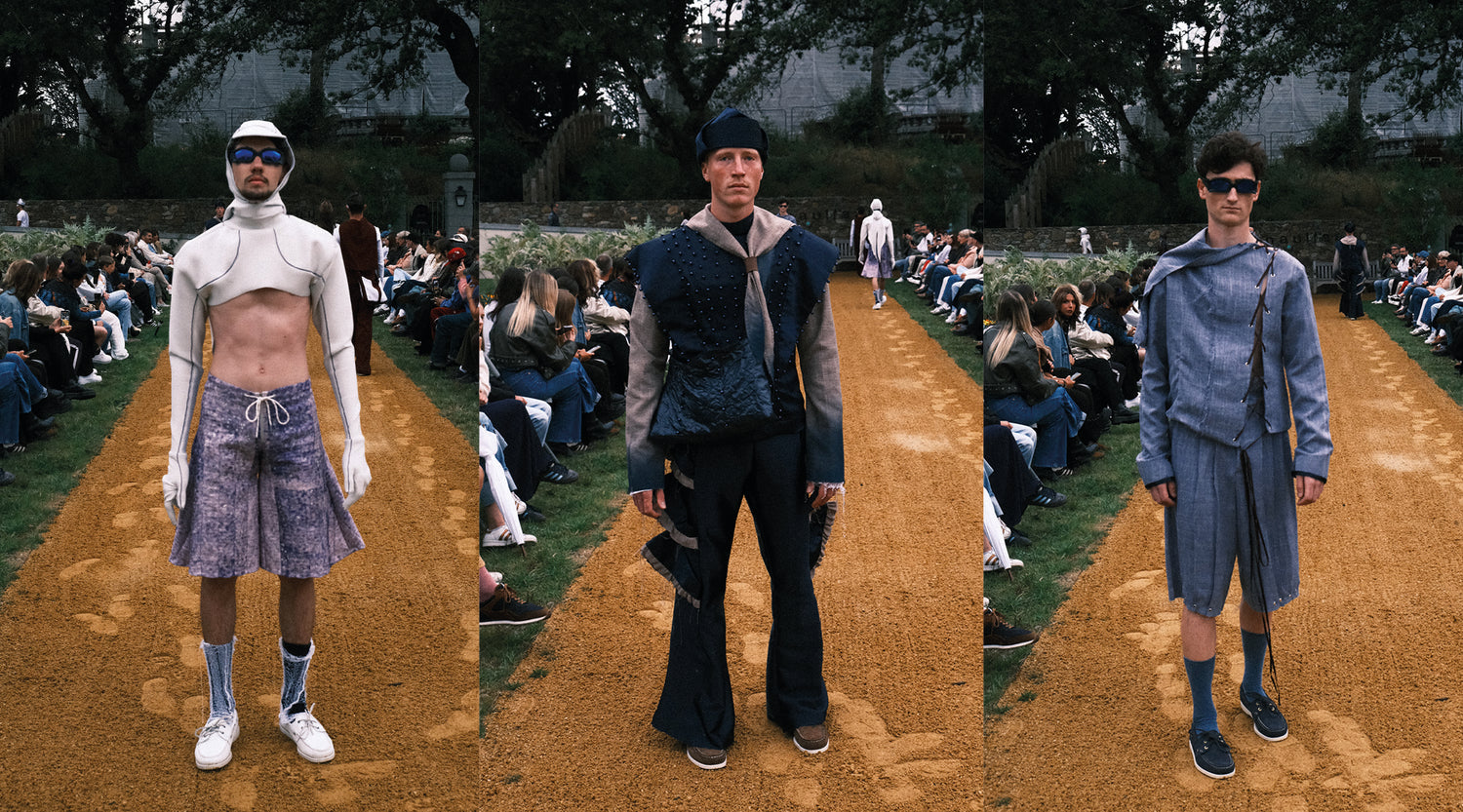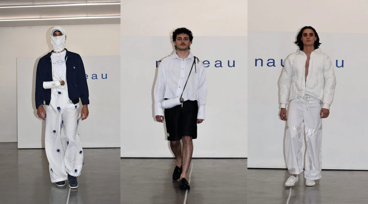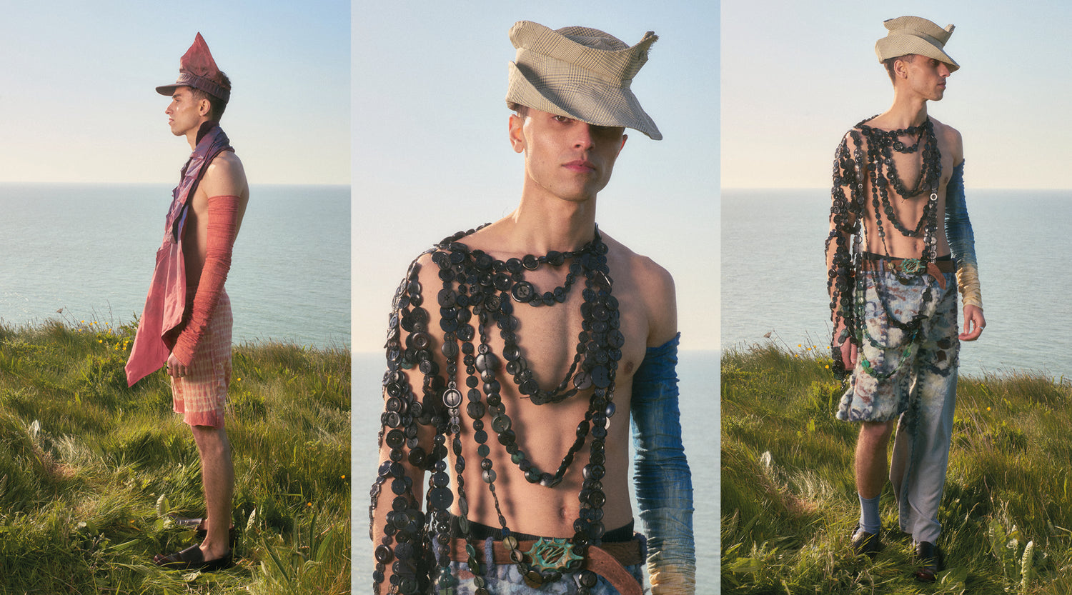 "The metamorphosis of the fisherman" Fluence evokes the constant flow of the tides, the fluidity of water. The collection tells the story of a shipwreck revisited. Through each ensemble, we explore the evolution of a contemporary sailor, initially elegant and sophisticated, who gradually transforms into an aquatic creature, half-man/half-sailor at the height of the fashion show, while occasionally reprising the codes of fishermen. We find aquatic forms in the final looks, inspired by the sea bed, in the style of Guillermo del Toro's film ‘The Shape of Water’.